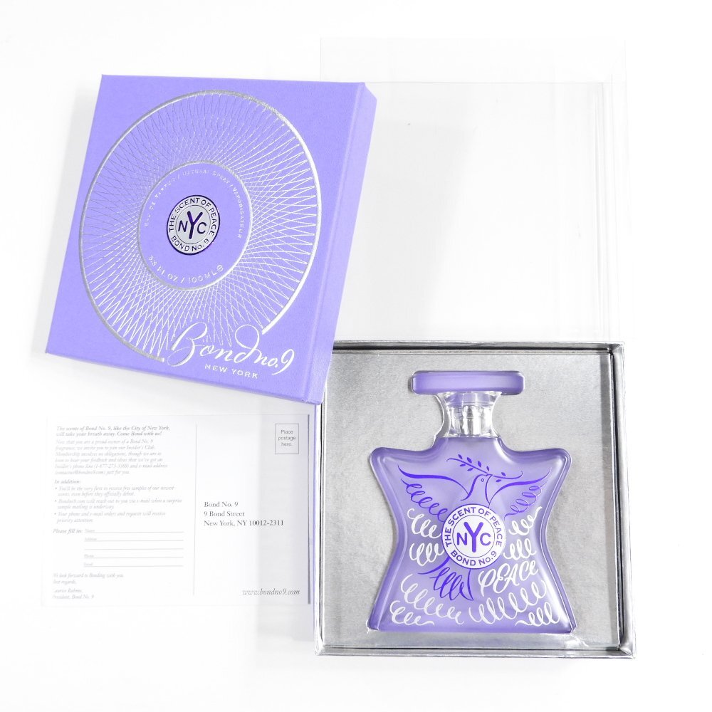BOND NO.9 ボンドナンバーナイン THE SCENT OF PEACE セントオブピース オードパルファン 100mlオークション落札相場 28,000円買取相場 14,000~17,000円